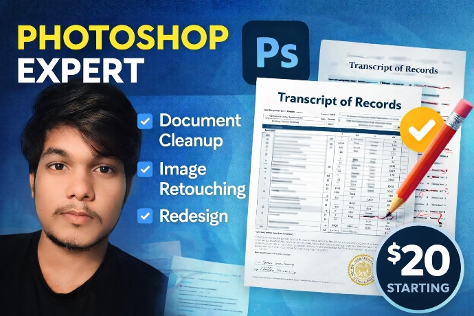 High-quality photo editing, background removal, retouching, document cleanup, banners, and social media creatives.