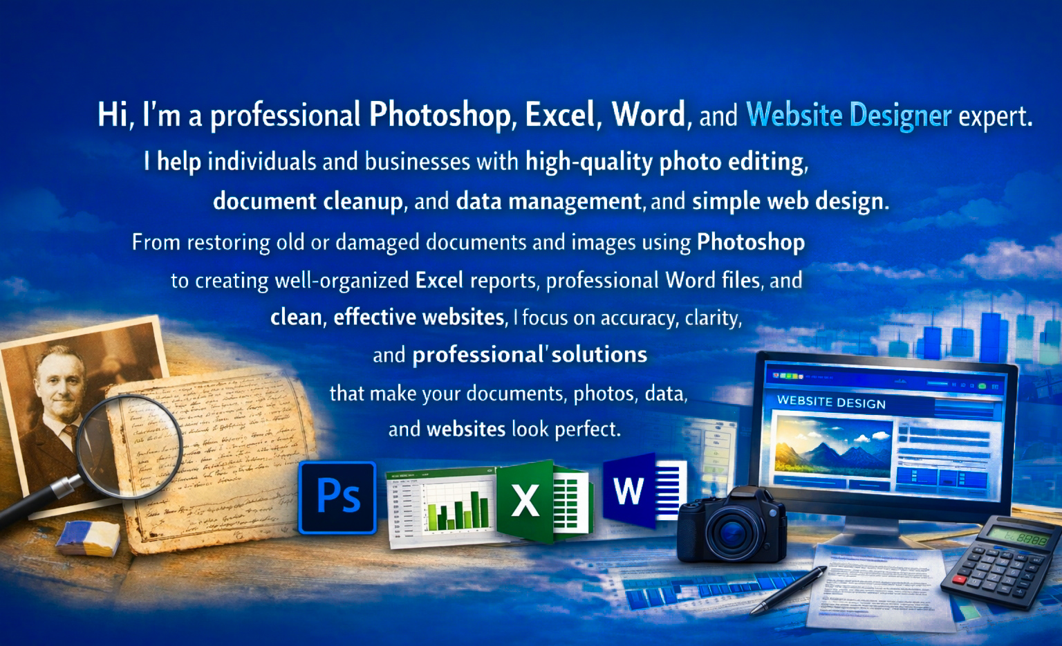 High-quality photo editing, background removal, retouching, document cleanup, banners, and social media creatives.